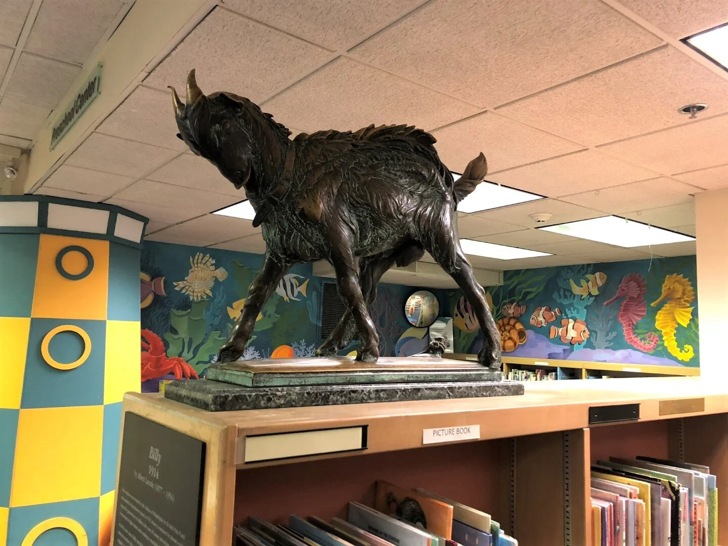 conserved billy goat relocated to library