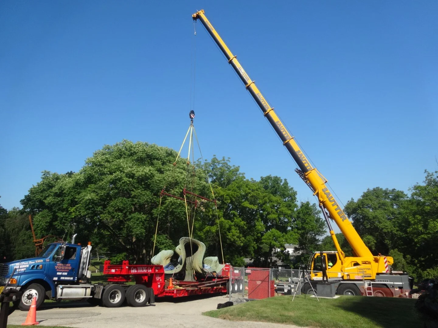 preparing to install sculpture in its new location