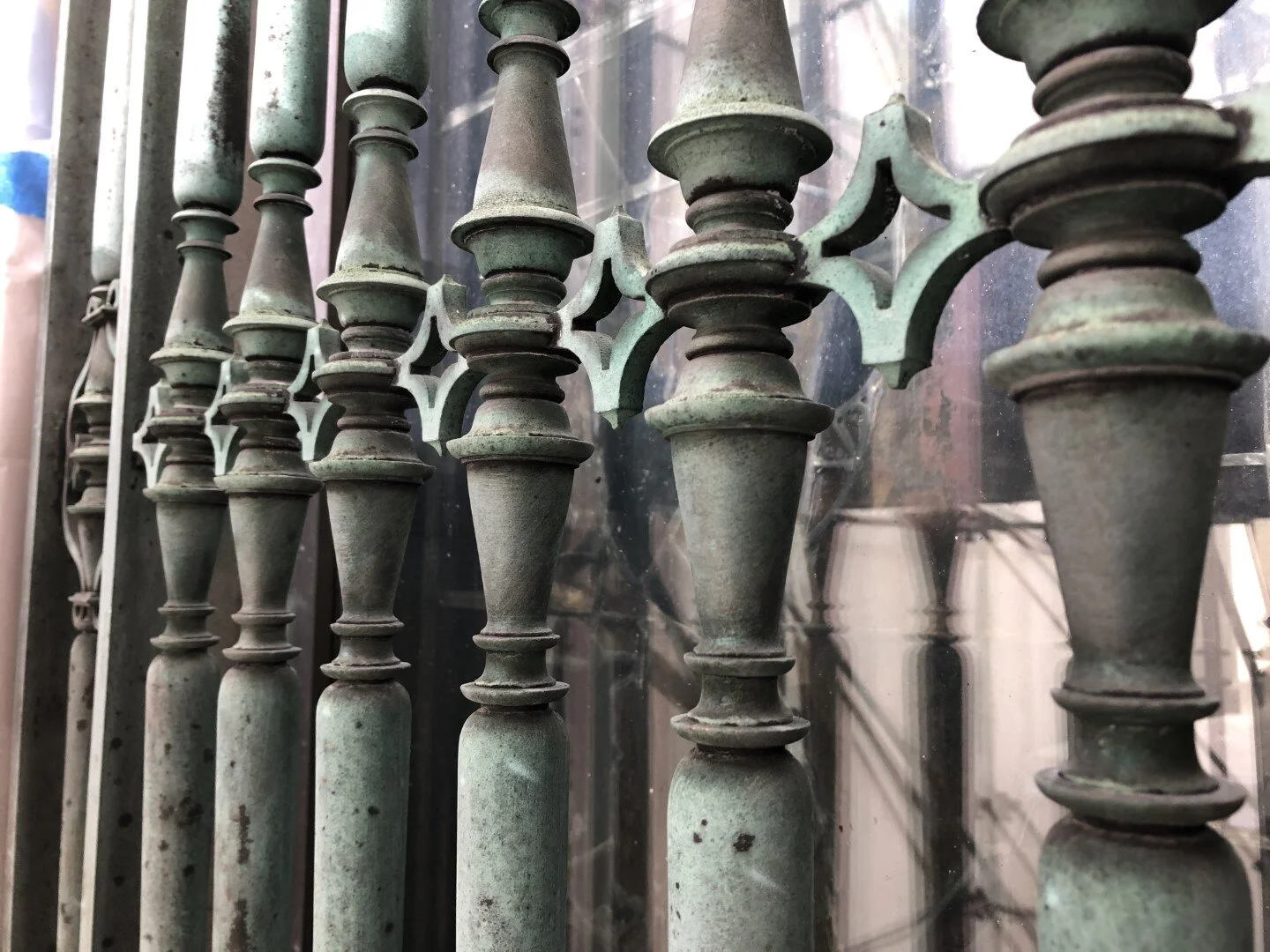 Kreilick’s scope of work included: deinstallation, conservation and repair, and reinstallation of the bronze fence sections and the entry gate on the south side of the building; in-situ conservation and repair of the fence sections on the east side; and in-situ conservation of window grills. The bronze surfaces were cleaned, patinated and waxed. Treatment methods were modified for objects treated in-situ to protect the adjacent masonry, wood, glass and other original, extant materials. In addition, Kreilick conserved and re-wired the large pendant lantern at the main entrance. As of March 2020, the majority of the project was completed, with the exception of reinstallation of a few of the south side fence panels and gates, which will be completed when public health concerns permit.